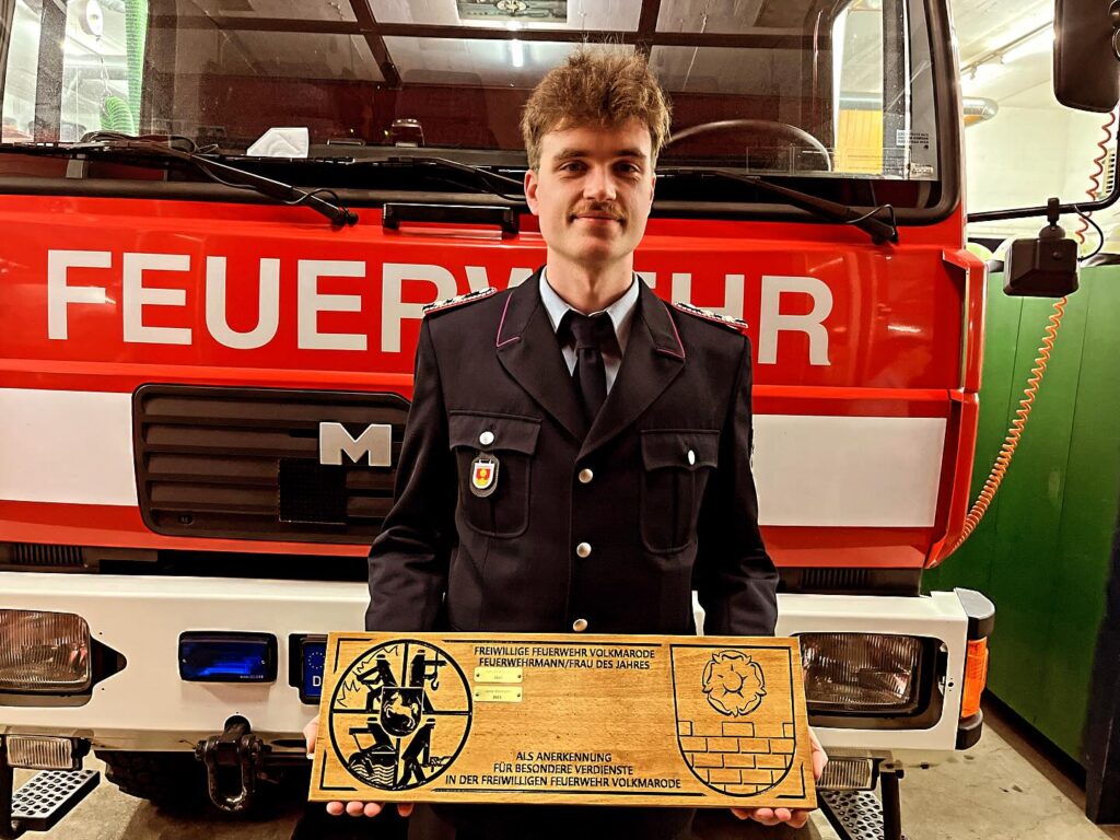 Zudem wurde der Kamerad L.Kleimann für seine geleistete Arbeit im vergangenen Jahr mit dem internen Titel Feuerwehrmann/Feuerwehrfrau des Jahres geehrt.